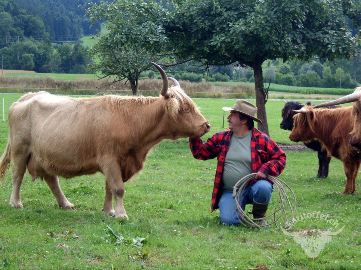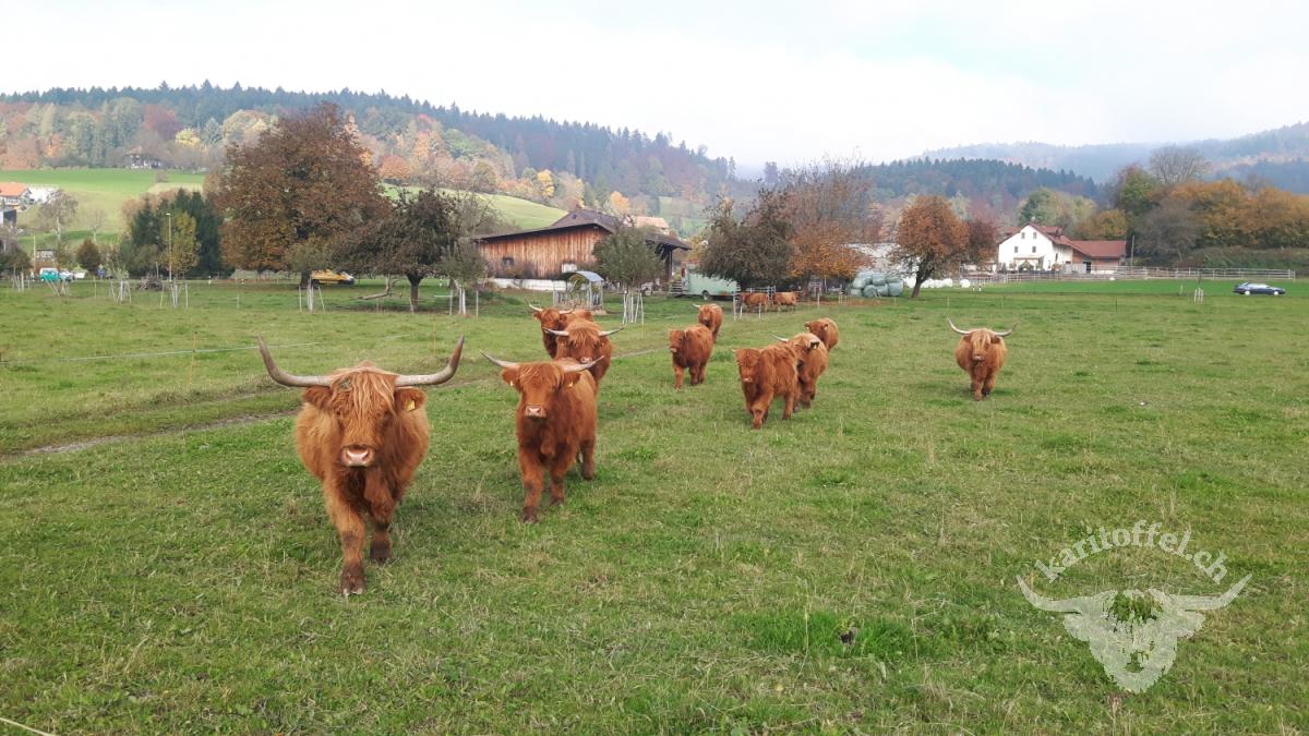 Im Winter gibt es Fleisch vom schottischen Hochlandrind. Es gibt Mischpakete, die reserviert werden müssen nach dem Motto: „es hät solangs hät“!